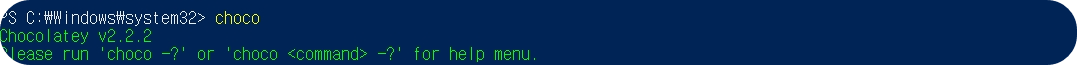 여기까지 하고 choco를 입력하여 아래처럼 나온다면 정상적으로 설치 완료된 것이다!
